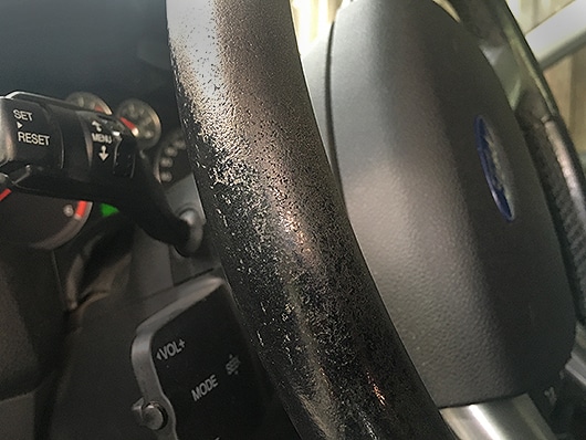Ton volant en cuir est brillant, usรฉ ou craquelรฉ ? Dรฉcouvre comment le rรฉnover toi-mรชme avec un kit ร 50 โฌ et notre mรฉthode pro en 5 รฉtapes.