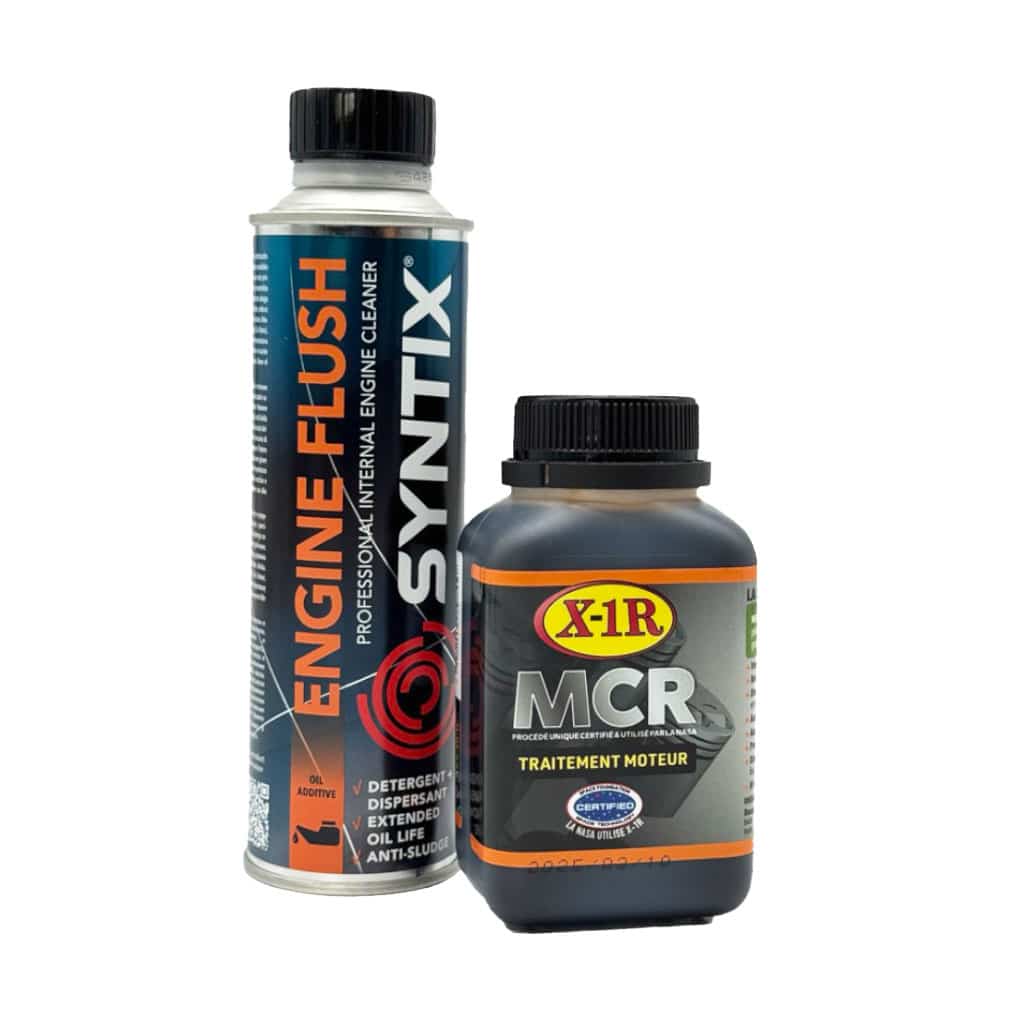 2 produits complรฉmentaires, j’effectue une premiรจre vidange avec de l’huile basique et un filtre ร huile neuf et engine flush, je roule 25 ร 50km, je re-vidange avec un nouveau filtre de l’huile Syntix et mcr-x1et roule les mรฉcanique, c’est au top, moteur plus rรฉactif, essayer c’est adopter